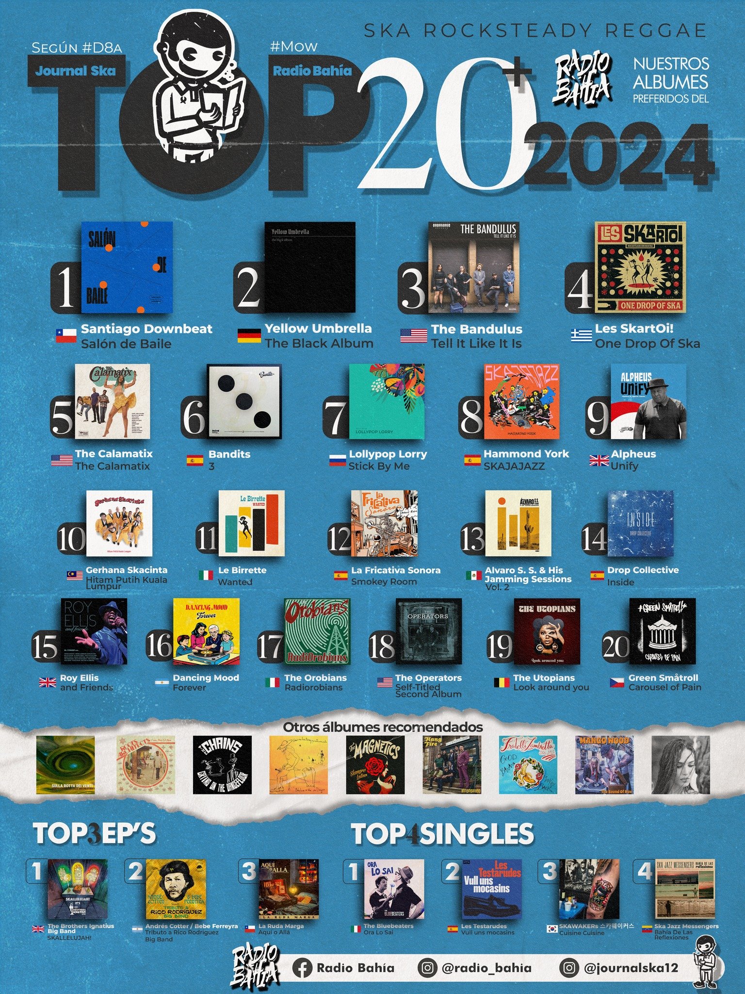 #D8a de Journal Ska acaba de publicar su selección de lo mejor de 2024 y nos alegra mucho encontrar dos álbumes editados por Brixton Records. En el Top20 encontramos en el puesto 14 “Inside” el más reciente álbum de DROP COLLECTIVE, y en el apartado Otros Albumes Recomendados aparece en primer lugar “Sulla Rotta Dei Venti” el último trabajo de NORTH EAST SKA JAZZ ORCHESTRA.