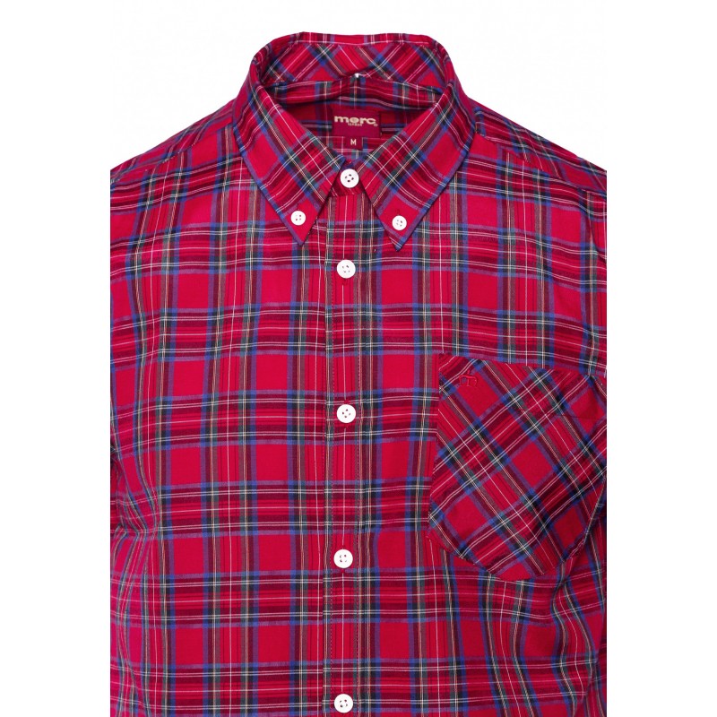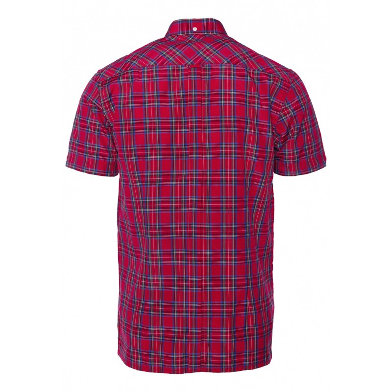 Una versión veraniega de un clásico. Esta camisa de manga corta a cuadros cuenta con cuello abotonado, bolsillo en el pecho y un llamativo estampado tartán rojo. Su confección en algodón ligero la convierte en una prenda básica ideal para los días más cálidos.