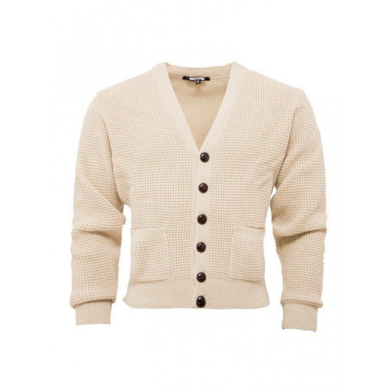Relco cardigan de punto waffle con botones estilo futbol – gris piedra
