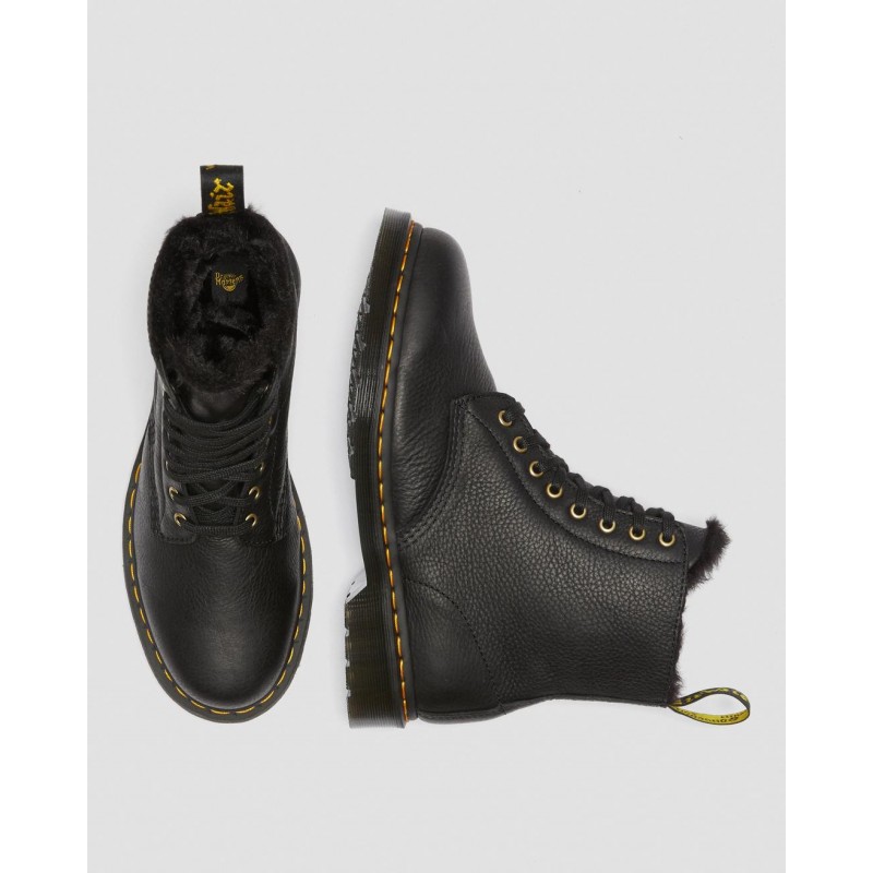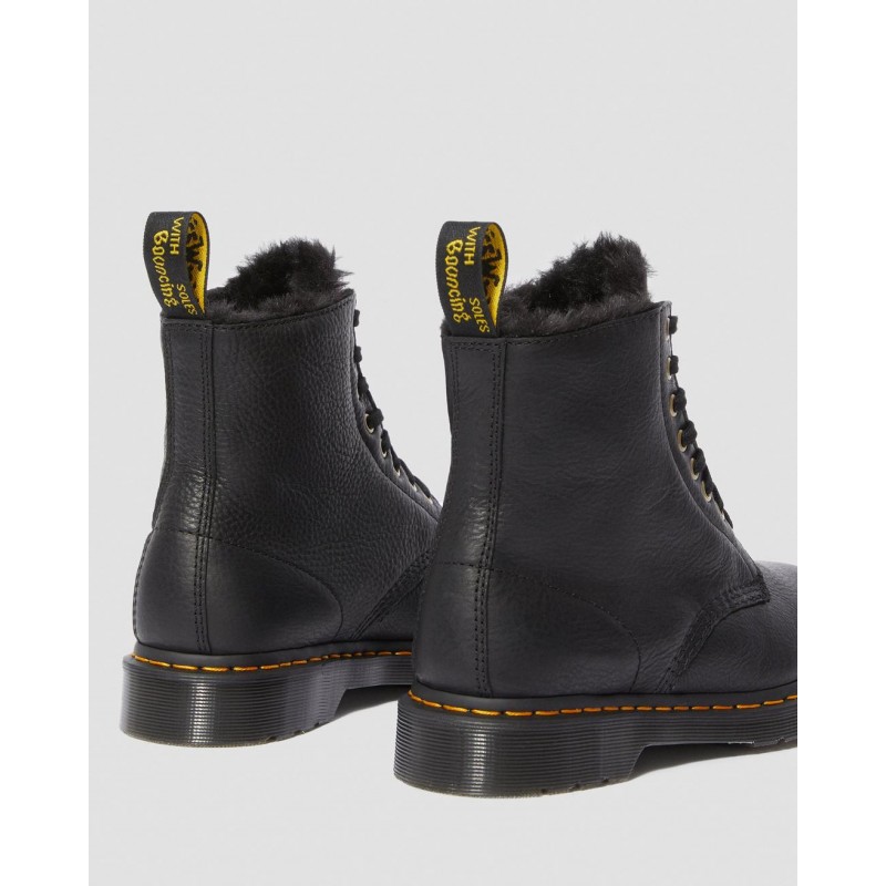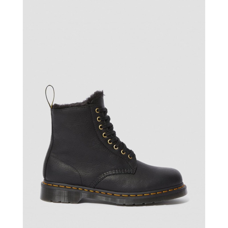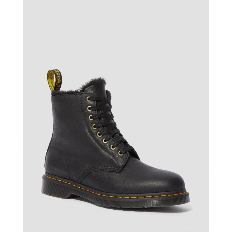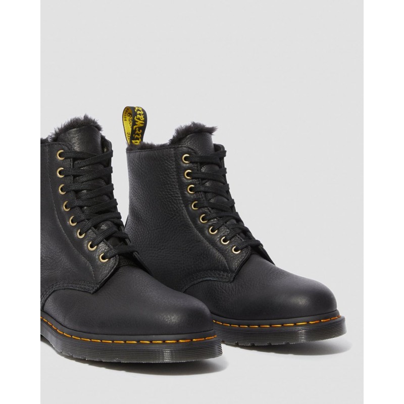 A winter twist on the classic 8-eye silhouette. 1460 Pascal Ambassador boot is built from a tumbled, raw-looking leather that feels worn-in from the first step. Lined with soft, rich artificial black fur. Original Doc DNA is still intact — like yellow stitching, grooved sides and heel loop.