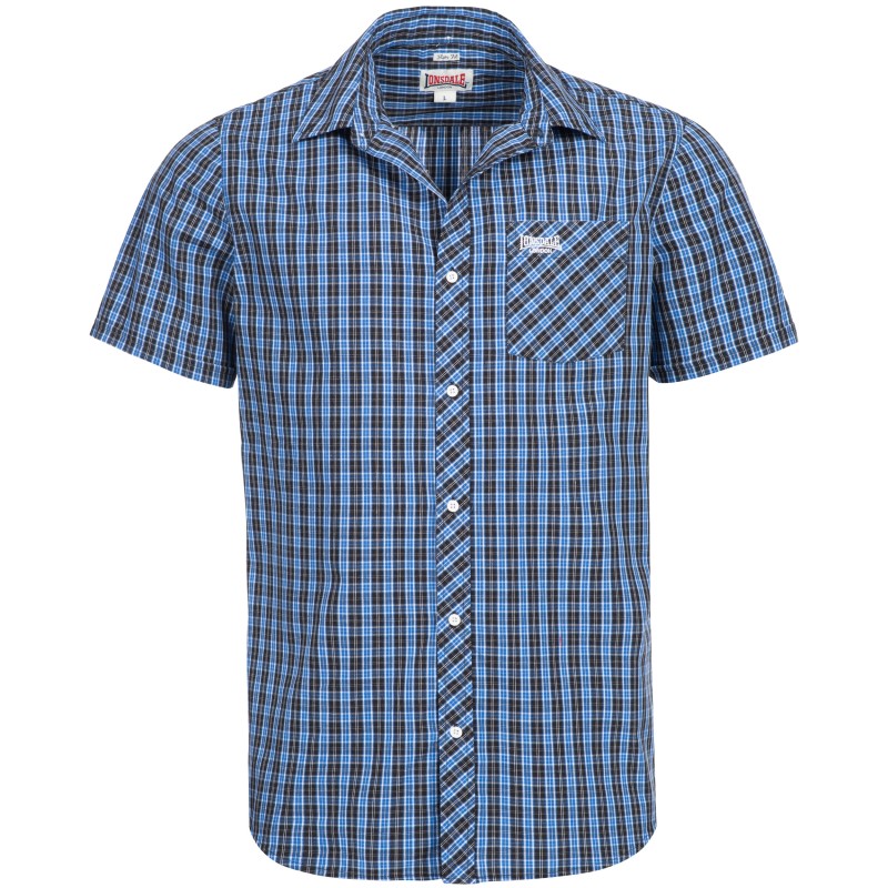 LONSDALE Mens Short Sleeved Shirt BRIXWORTH – BLUE / WHITE / BLACK
