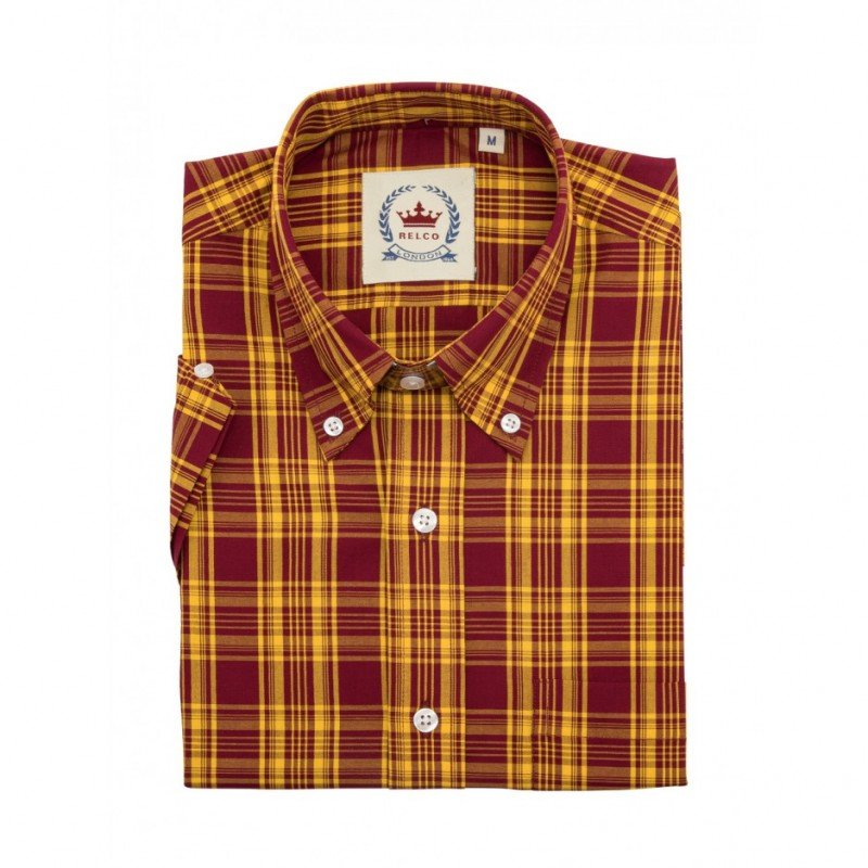 RELCO camisa de manga corta de cuadros – Mostaza con Granate