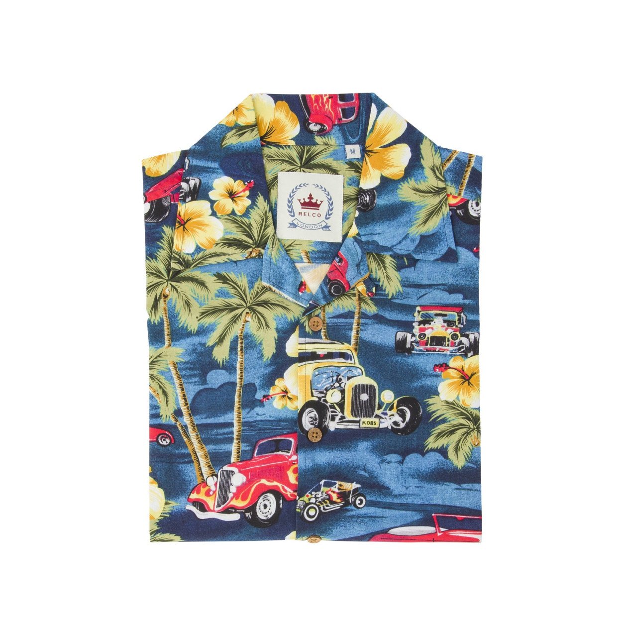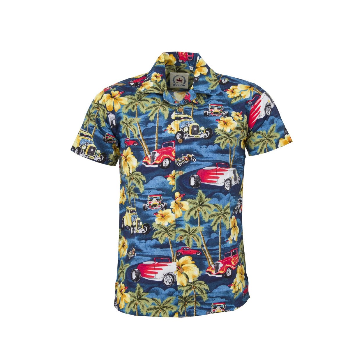 RELCO camisa manga Corta Hawaii con coches antiguos
