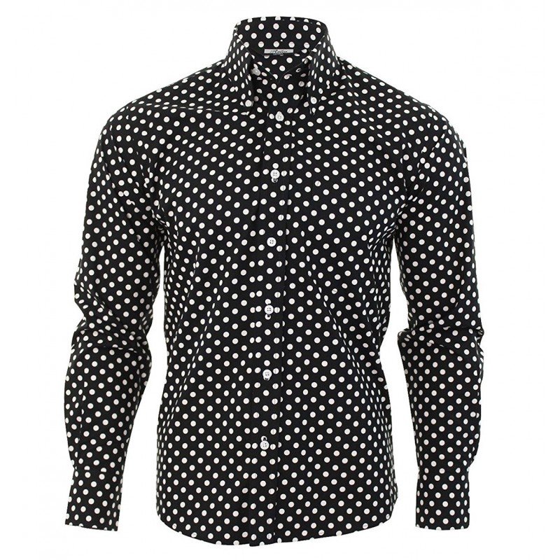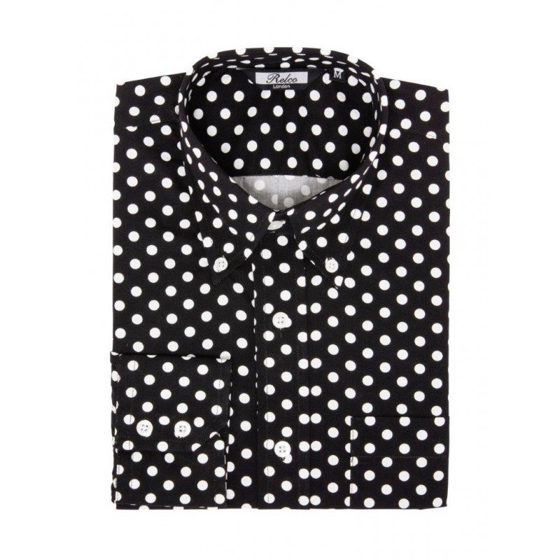 RELCO Camisa Manga Larga Button-Down Lunares – NEGROS y BLANCOS