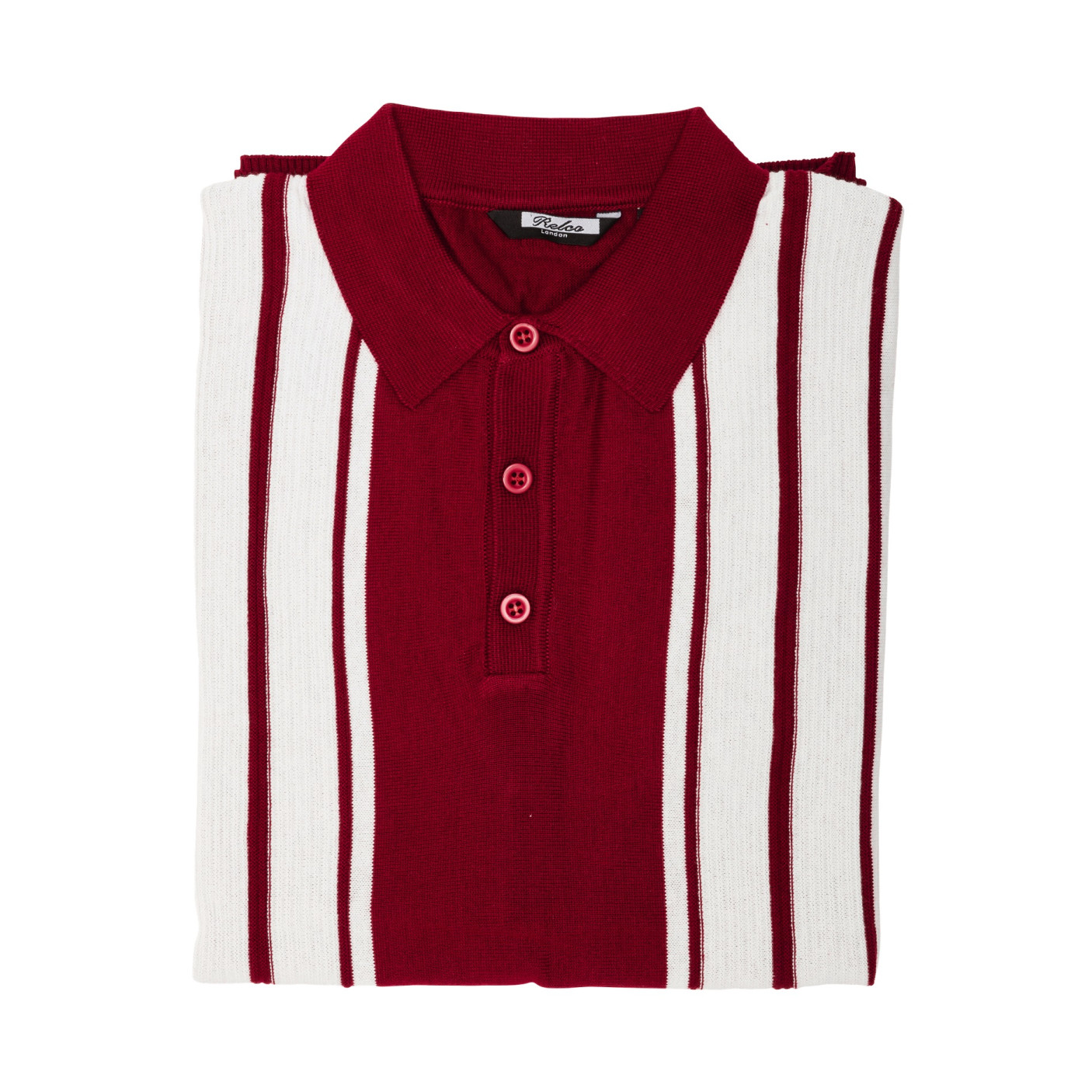 Mens Knitted polo in Burgundy with White contrasting stripes. 50% Cotton 50% Acrylic