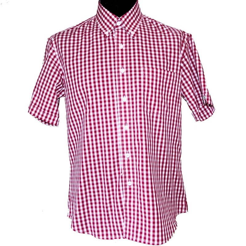 100% Pre-shrunk cotton. Vintage Style & Fit with Full Back Pleat. Classic 3 Finger Button Down Collar. Vented Short Sleeve