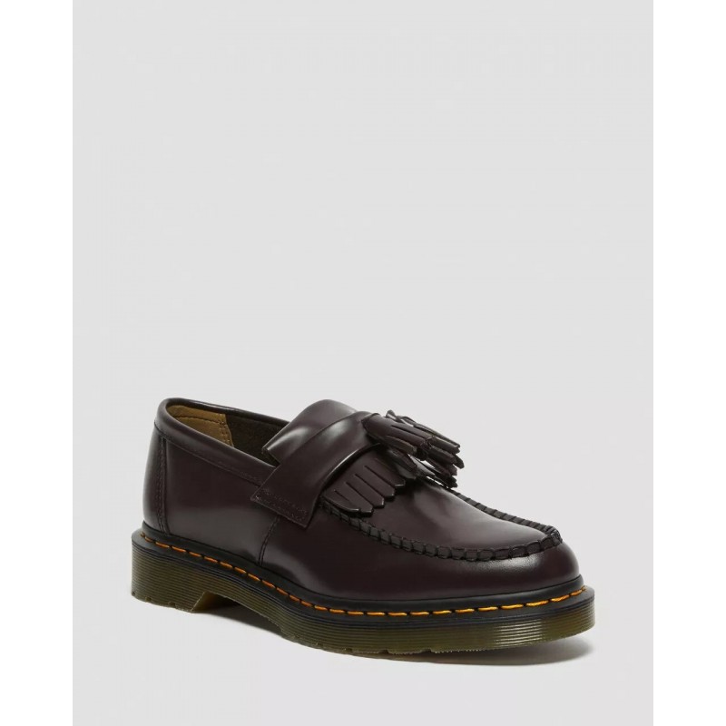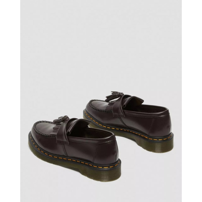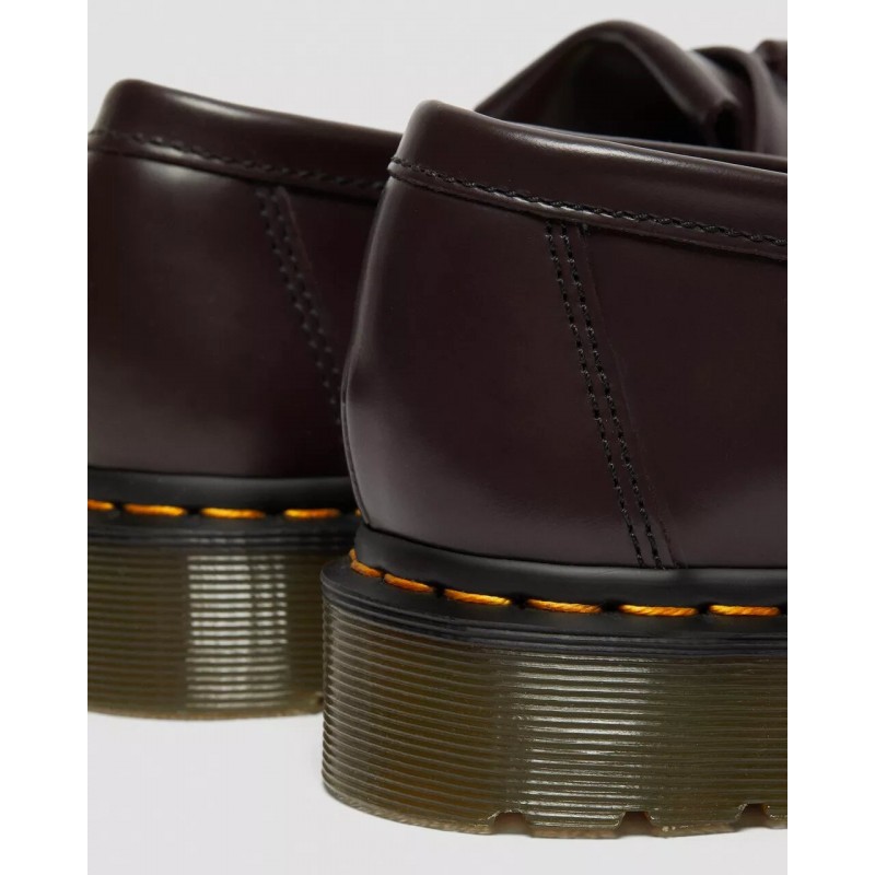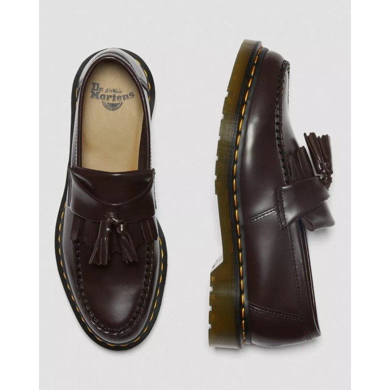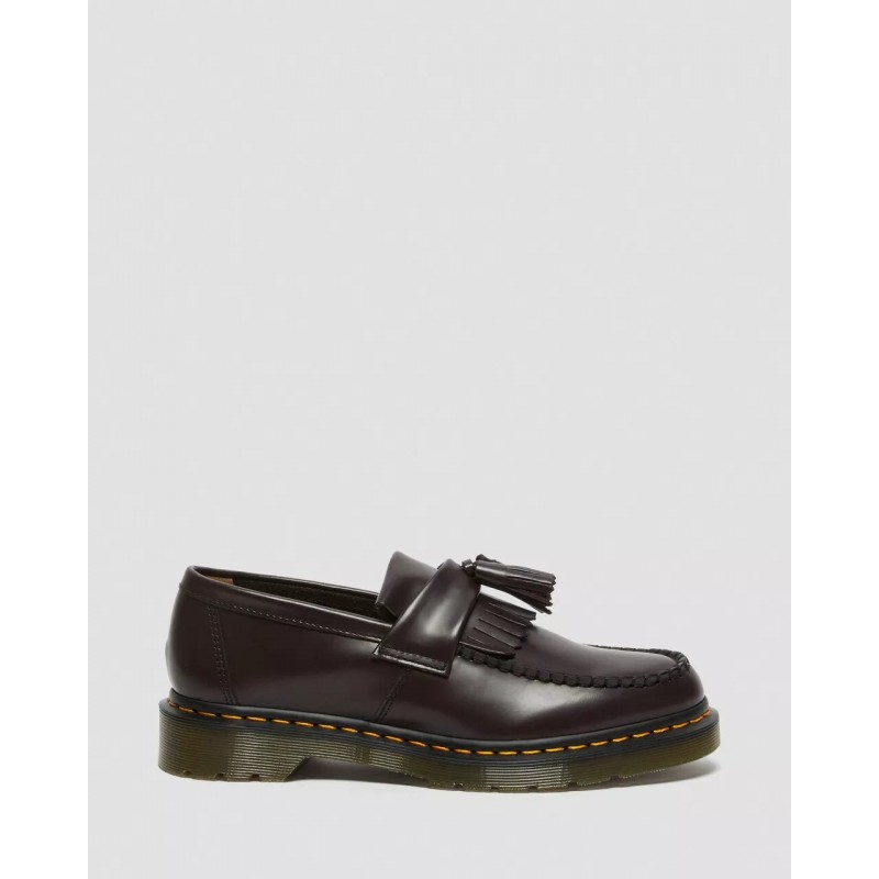 El mocasín de borlas es un clásico de la contracultura, y aquí se presenta con nuestro cuero Polished Smooth, una versión del clásico cuero Dr. Martens: duradero y con un acabado liso y bruñido. Este clásico mocasín de borlas en cuero Burgundy Polished Smooth lleva una vira Goodyear, lo que significa que la pala y la suela están termoselladas y cosidas. La suela con cámara de aire Dr. Martens tiene una buena resistencia contra el aceite, la grasa, la abrasión y los resbalones. Instrucciones de conservación: Limpia la suciedad con un paño húmedo y deja que se seque. Aplica el betún a la cera del color correcto para devolverle el brillo