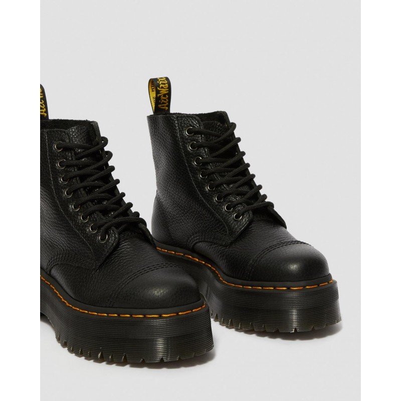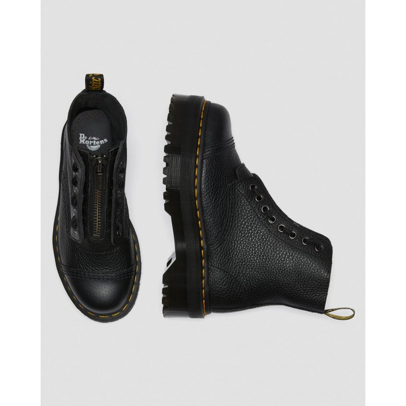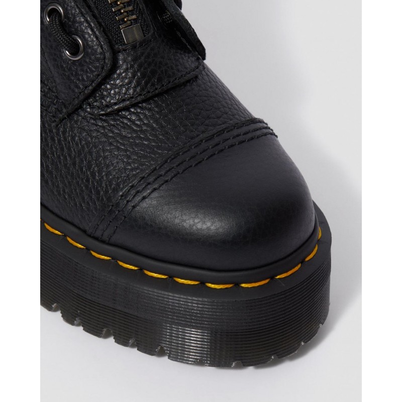 La bota Sinclair: todo un clásico moderno con el carácter único de las Dr. Martens. Una bota de mujer con 8 ojales, cordones y cremallera, pespunte Puritan en la puntera y una suela gruesa con plataforma. Con dos tipos de cierre distintos: cordones y cremallera.