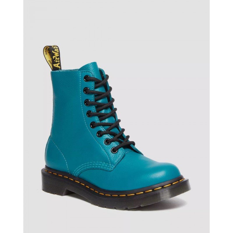 Bota Dr. Martens Pascal 8 Agujeros Virginia – VERDE AZULADO. La suela es antideslizante y ofrece una gran resistencia a la abrasión.