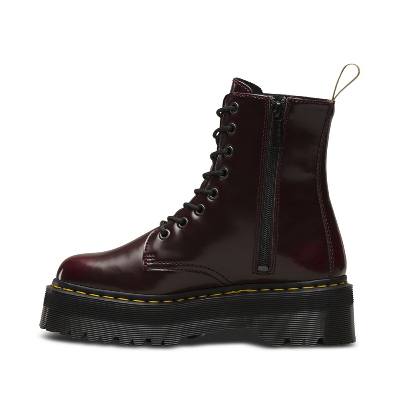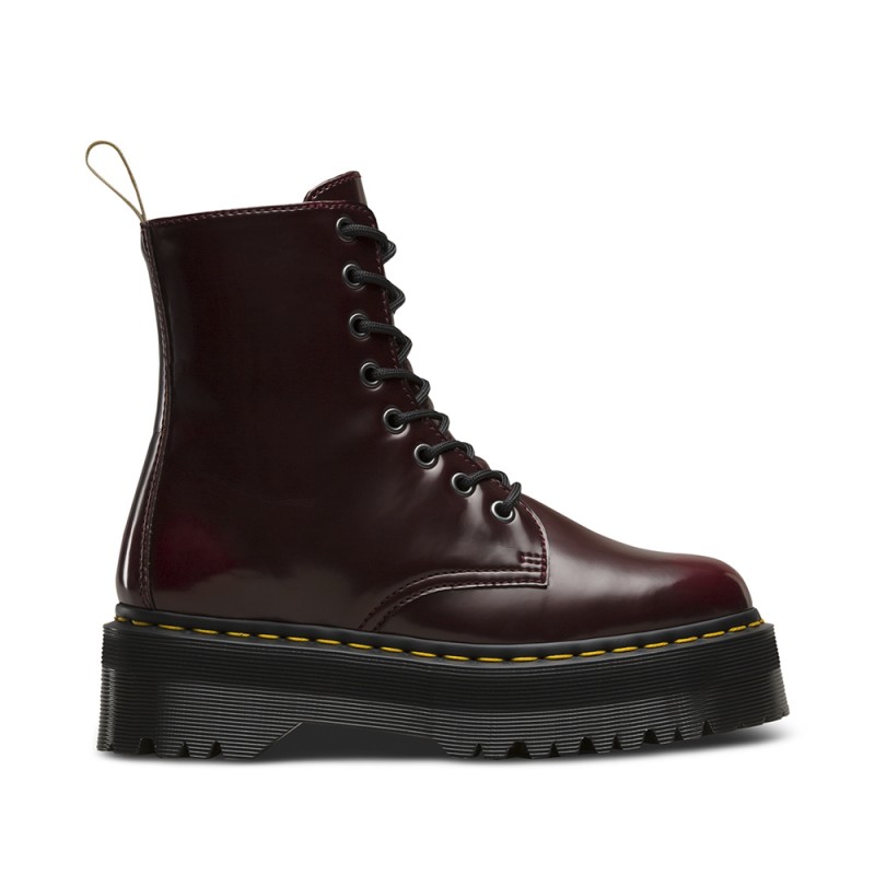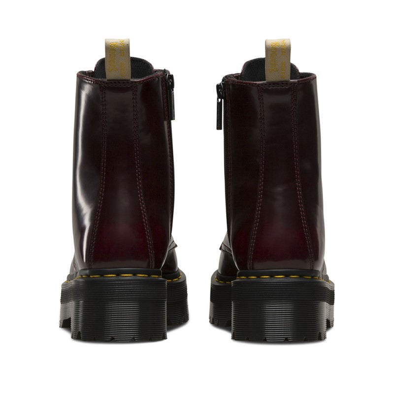 100 % veganas: se han diseñado sin usar ningún producto animal Confeccionada con Cambridge Brush, un material sintético muy brillante con acabado de dos tonos cherry-red Montada sobre la emblemática suela con cámara de aire Dr. Martens, inconformista y cómoda a la vez Suela antideslizante muy eficaz contra la abrasión y resistente al aceite y la grasa El ADN de las clásicas Docs en todo su esplendor: puntada visible, borde estriado y tira en forma de bucle inscrita en el talón La plataforma tiene una altura de 3,8 cm y un tacón de 5 cm