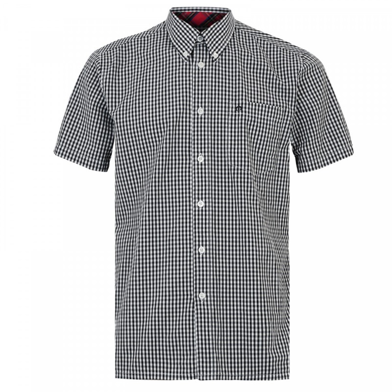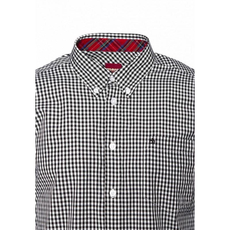 La destacada camisa de manga corta de cuadros presenta un cuello abotonado, bordado Merc en el pecho, pliegues en la parte trasera y pinzas dobles.