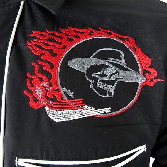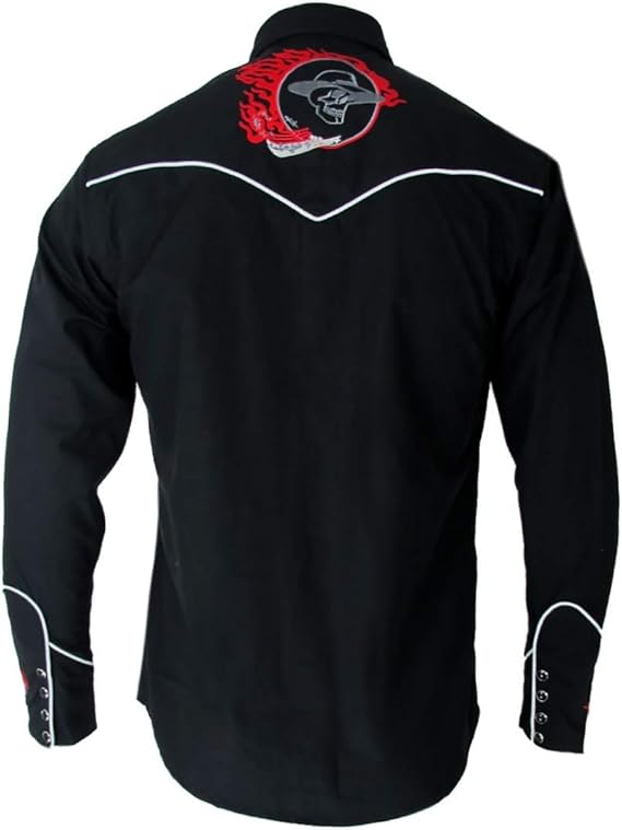 Camisa Rockabilly Manga Larga – NEGRO Con Jinete Bordado