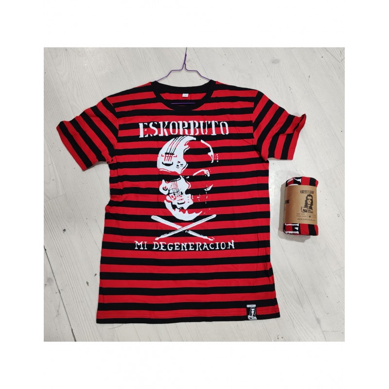 Camiseta Oficial ESKORBUTO de rayas – ROJAS Y NEGRAS