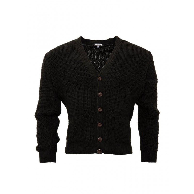 Relco cardigan de punto waffle con botones estilo futbol – negro