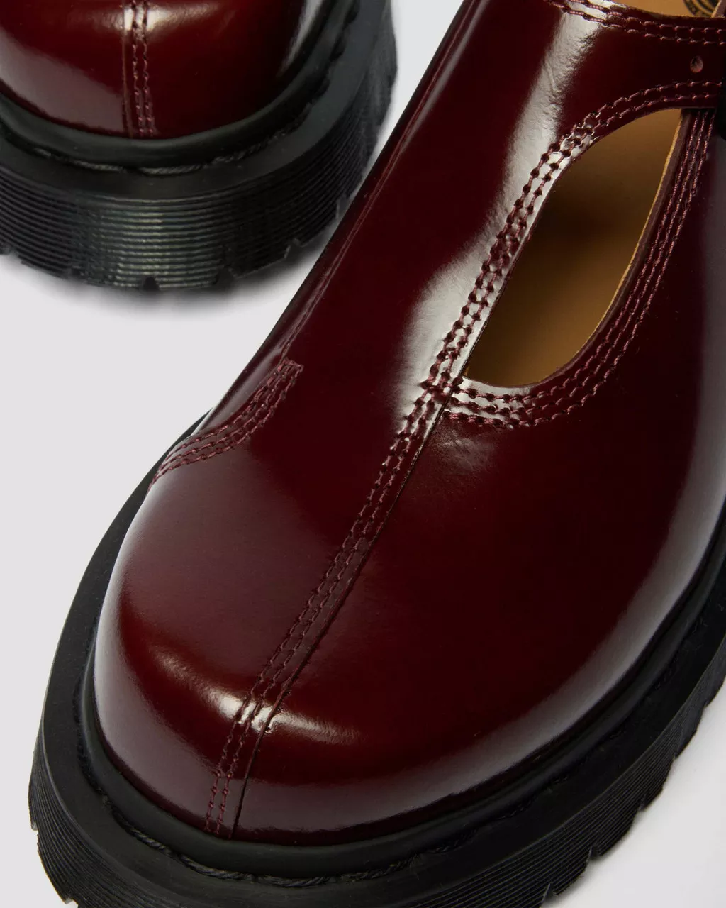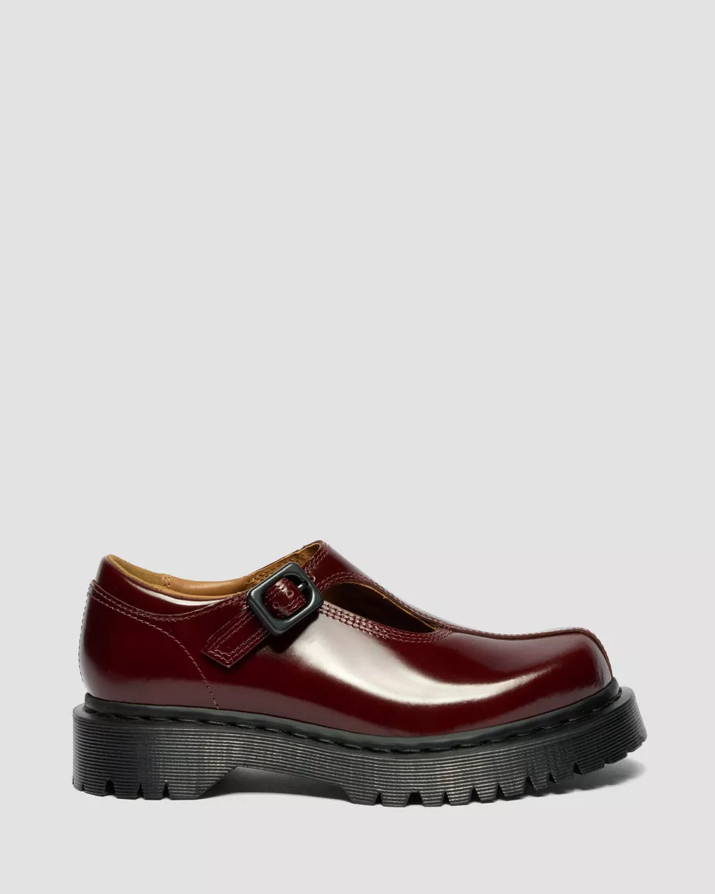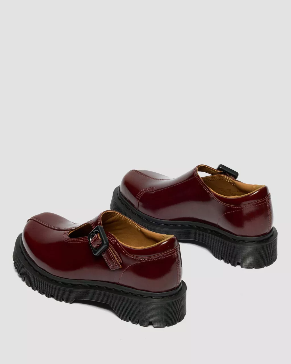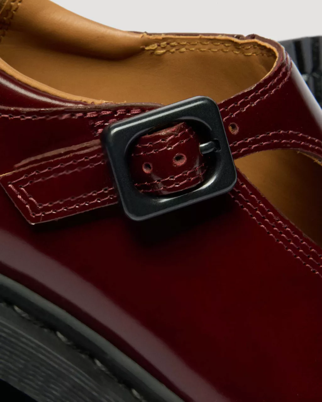 Un nuevo ángulo para el calzado de DM’s. Rediseño de la mercedita Rejena con un sutil acabado cuadrado para una silueta más estilizada. Confeccionada con maestría con charol Patent Lamper de color rojo cereza. La silueta asimétrica incorpora una única hebilla y una abertura descentrada, creando así una silueta sofisticada. Se asienta sobre una suela Bex extra alta y está rematada con un pespunte negro. MATERIAL Laquered Leather está recubierta de PU ligeramente brillante para conservar la flexibilidad natural de la piel.