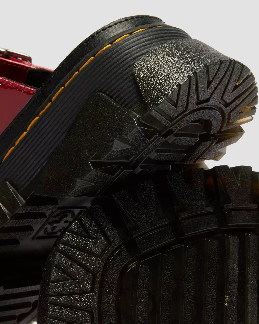Las sandalias Mattison elevan su carácter con esta nueva versión de piel Soft Patent rojo escarlata, rematada con ribete en rosa palo. Con la inconfundible plataforma Mattison, combinan una entresuela de EVA ligera con PVC estriado de carácter crudo y contundente. La plantilla de espuma forrada con ante ofrece un alto nivel de confort, mientras que la tira ajustable asegura una sujeción firme del pie. Y como toque final el emblemático pespunte amarillo. Unas sandalias para los gustos más atrevidos. MATERIAL Soft Patent es nuestra piel súper suave recubierta de PU de alto brillo.