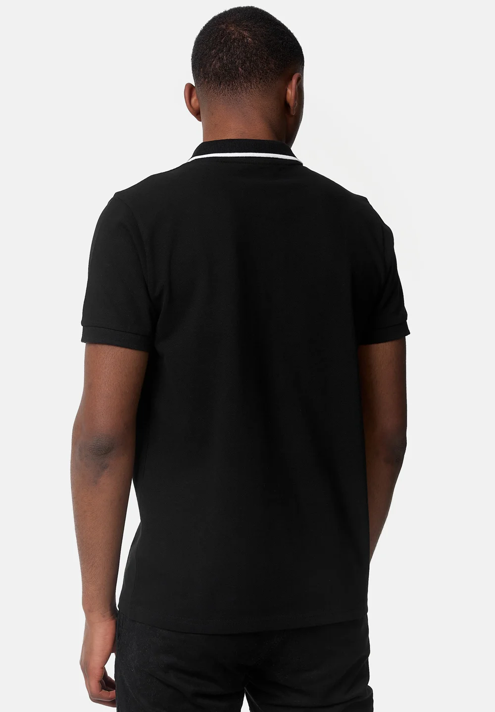 10polo con pequeño logotipo bordado en el pecho. El cuello presenta una franja en contraste que combina con el color del bordado. La tapeta se puede abrir y cerrar con tres botones.