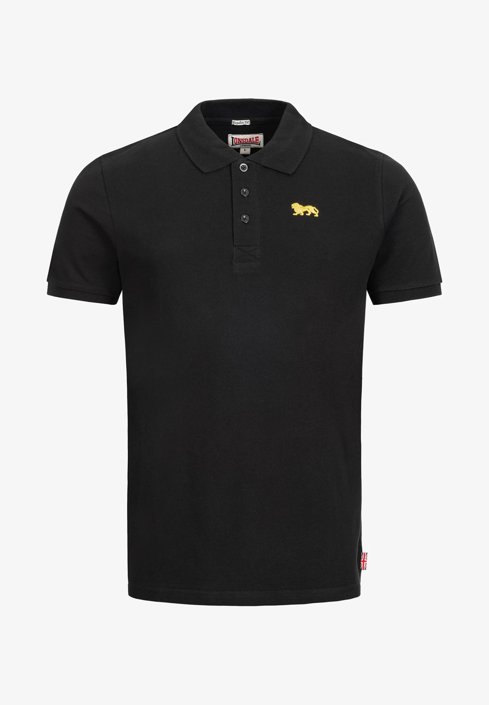 Polo Lonsdale de color negro con león bordado en color amarillo en el pecho. Ajuste Regular Fit con cierre de 3 botones.