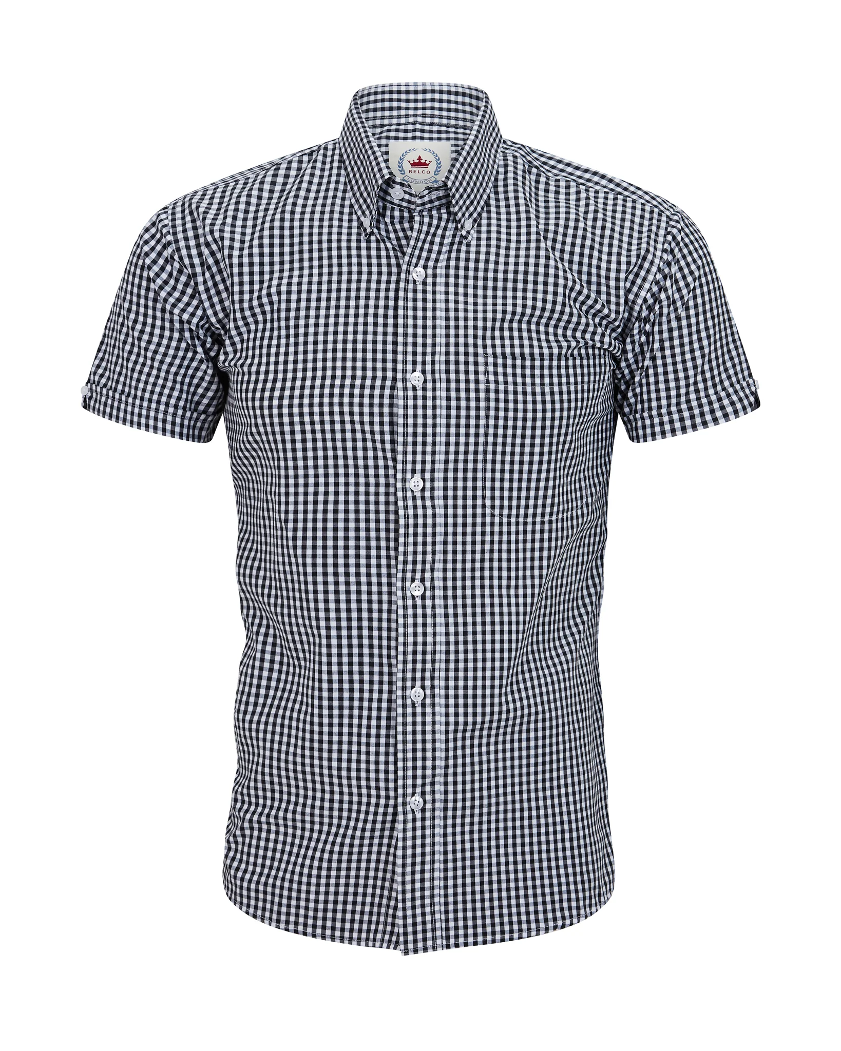 Blanco y negro en un clásico estampado gingham. Una camisa de cuadros de Relco London con actitud y estilo atemporal.