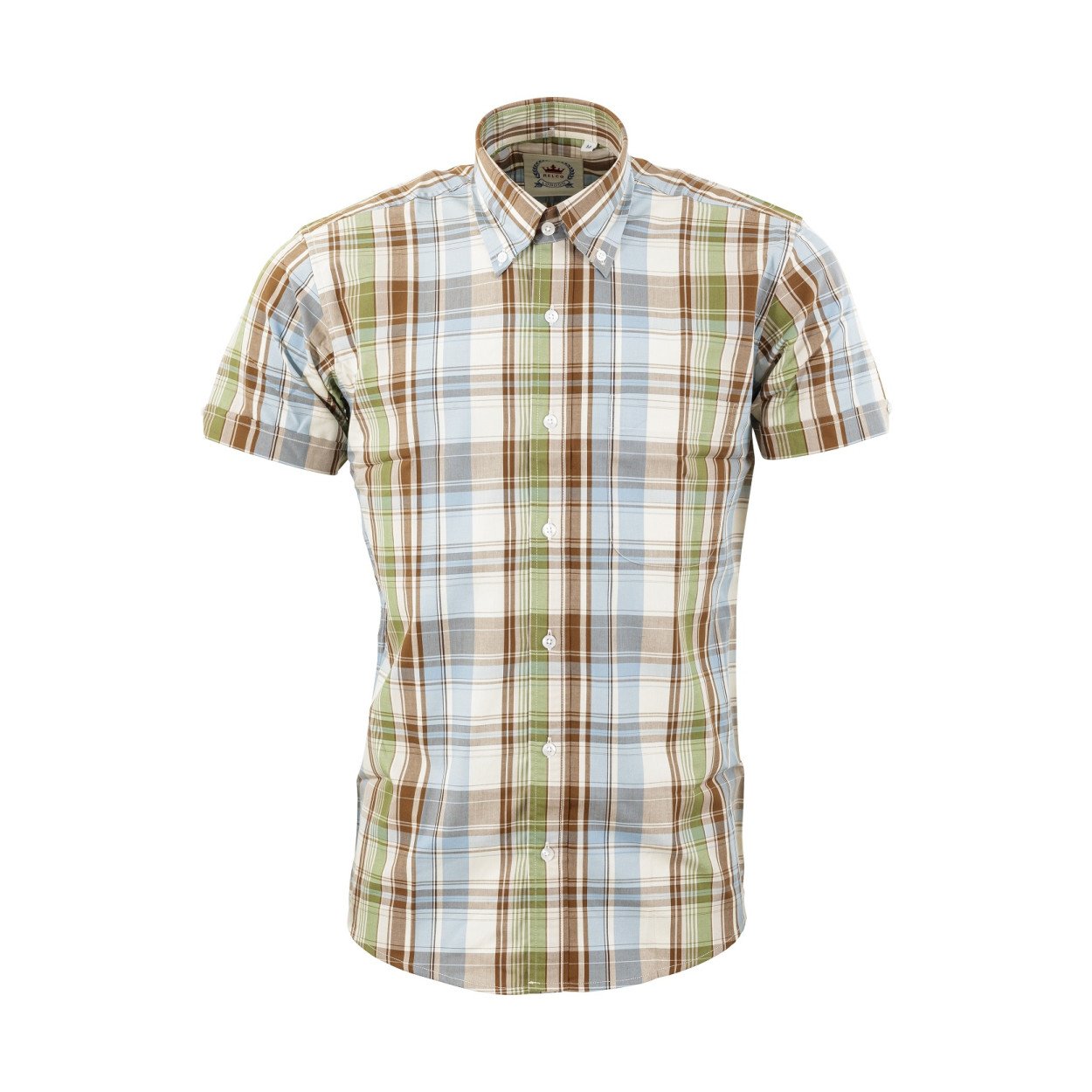 RELCO camisa manga corta de cuadros – celeste, verde y marron