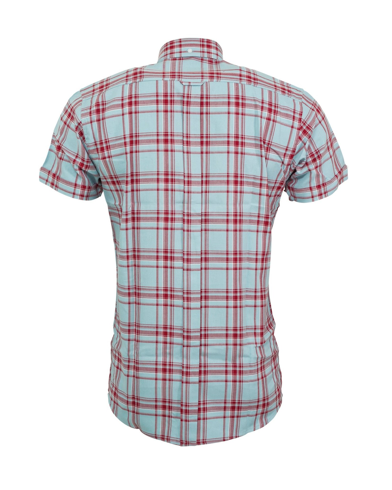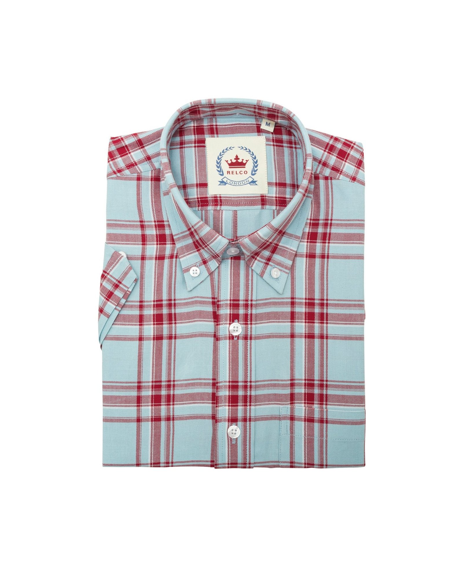 RELCO Camisa Manga Corta Button-Down – CELESTE CON GRANATE